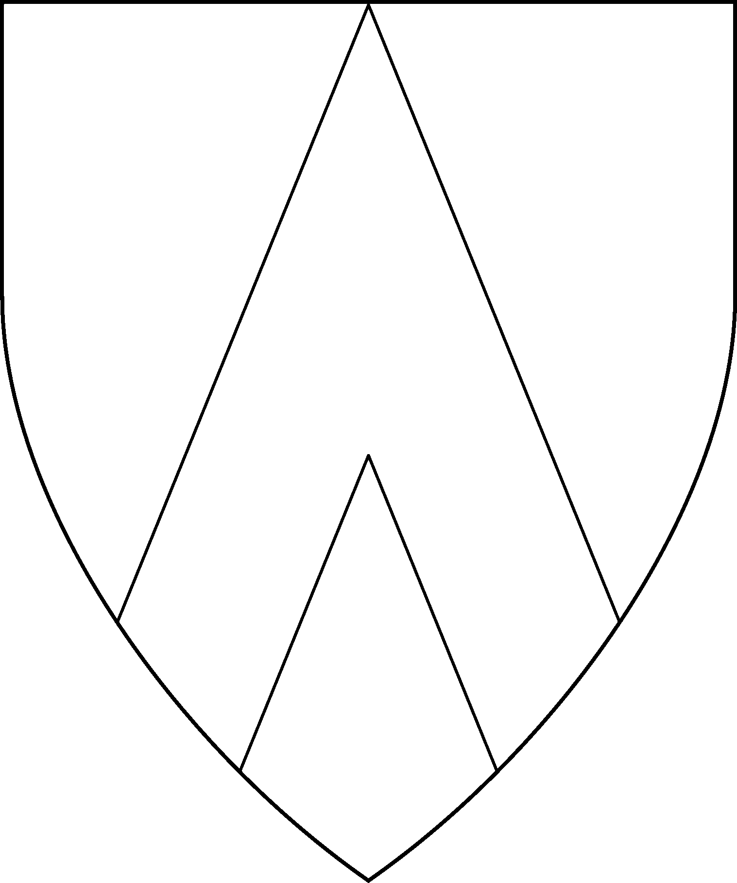 Central ordinary. Must issue from sides of device. Must be centered on the fess line, except if shifted up or down to accommodate secondary charges. Angle may be narrower or wider than 90°. The thickness of each arm is typically between a third to a fifth of the width of the device.