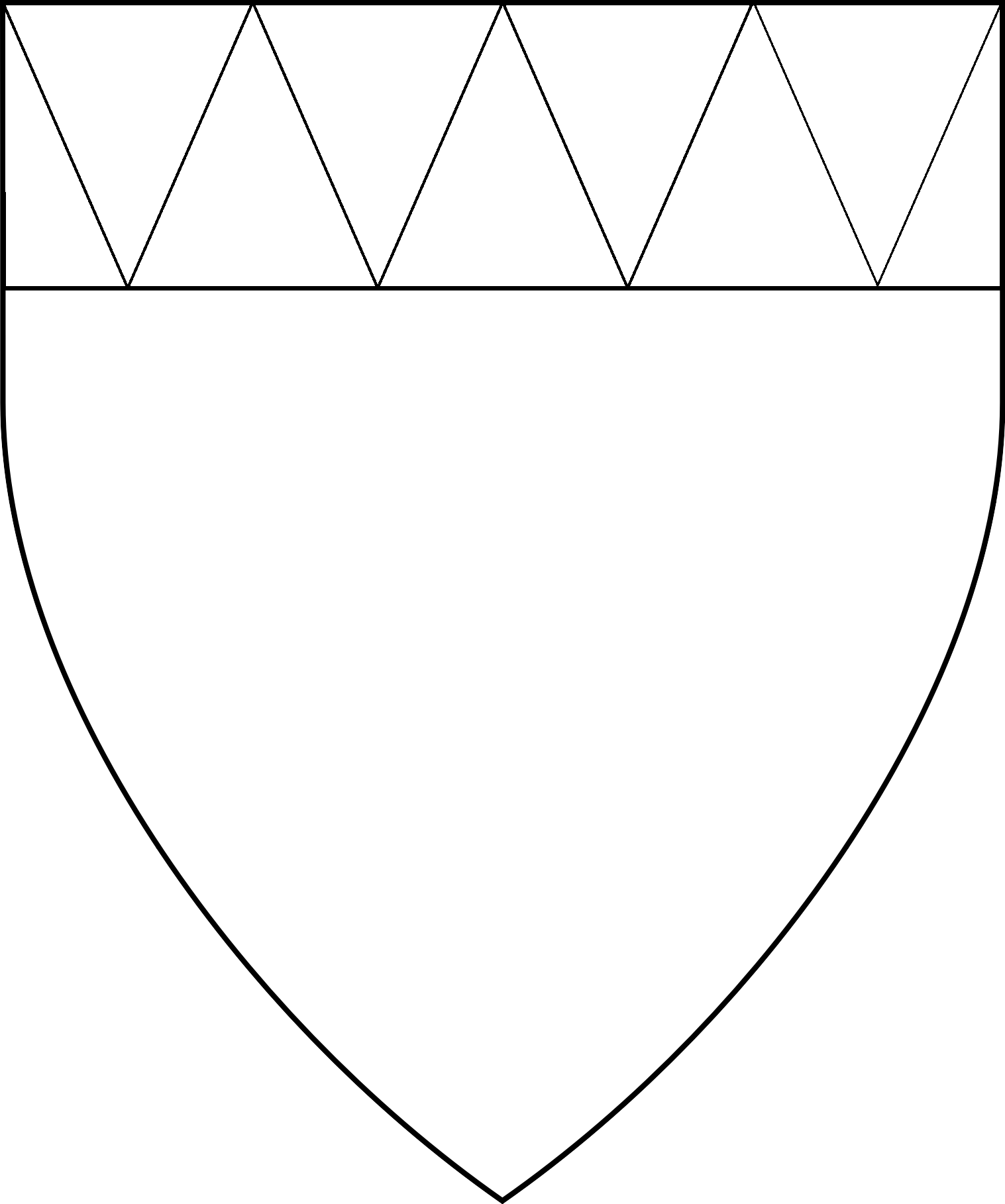 When a chief and a bordure were combined in period, the chief occasionally appears above an attenuated field surrounded by the bordure, as shown here.