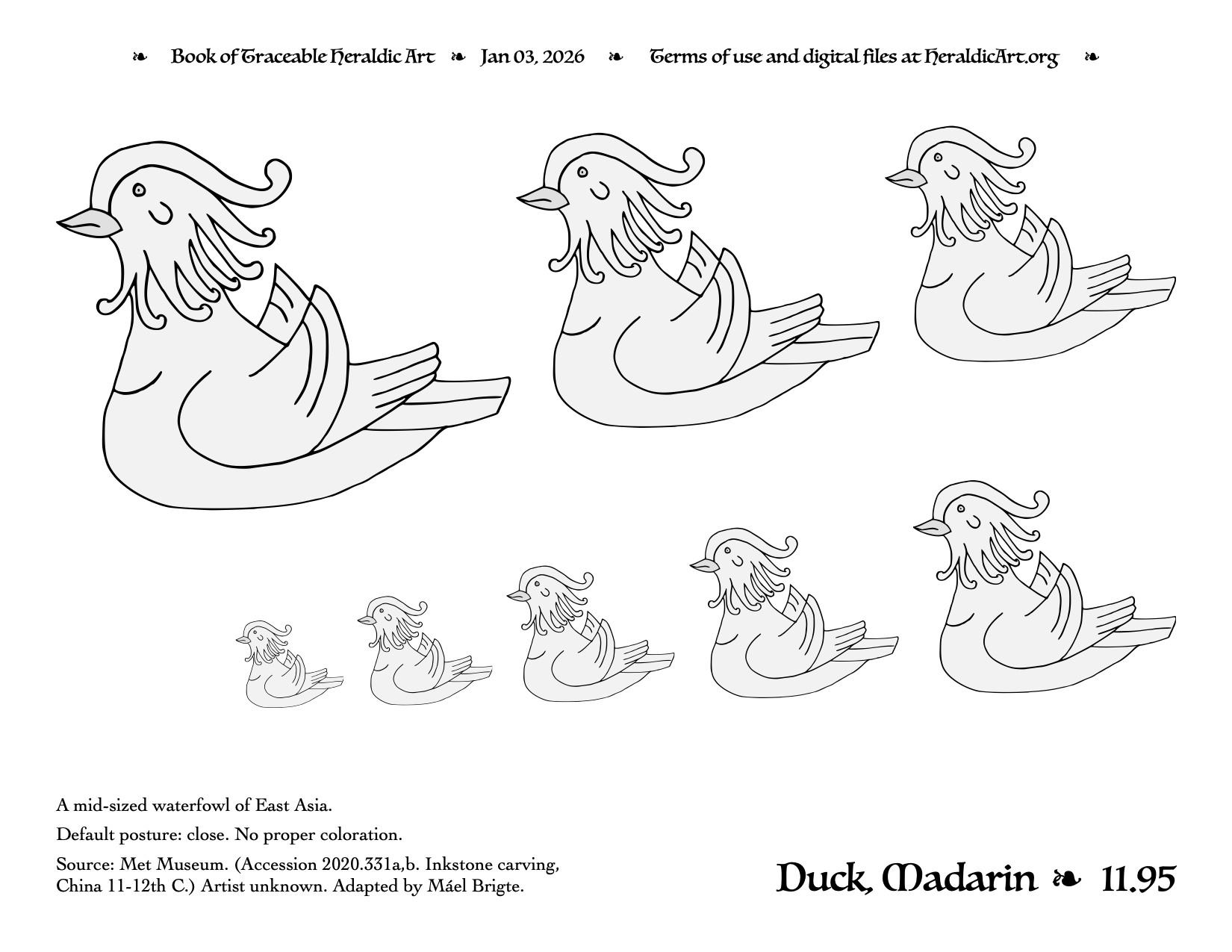 Default posture: close. Proper coloration: belly argent, wings sable, beak and legs Or.