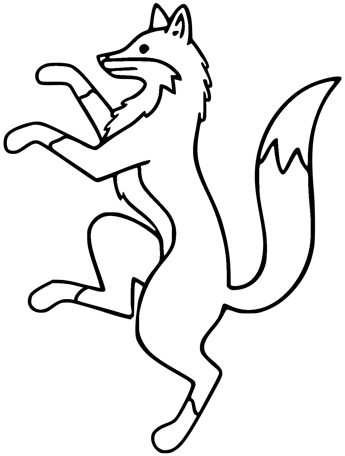No default posture. Proper coloration: gules, with argent tail tip; often has sable or argent socks, and may have an argent chest, but these are unblazonable details.