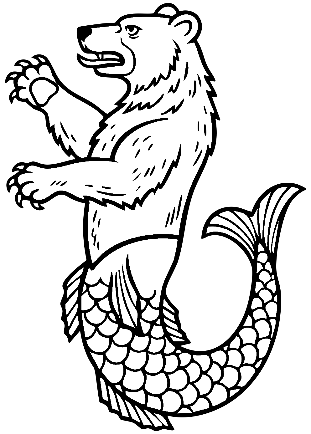 An aquatic monster with the body of a bear and the tail of a fish.