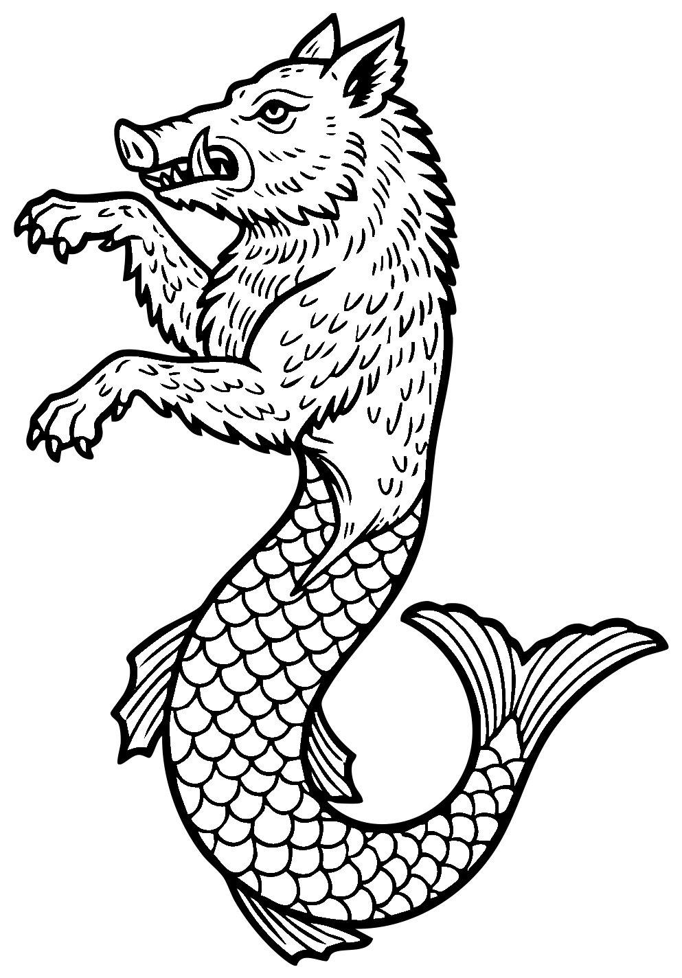 An aquatic monster with the body of a boar and the tail of a fish.