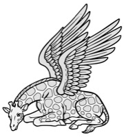 A heraldic monster with a deer-like body, a fox tail, and a smattering of stars.