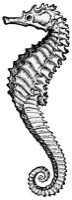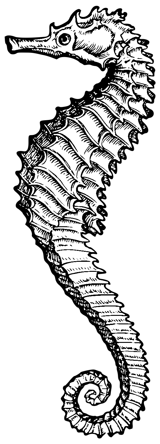 A curious fish with an upright posture, hard plates under their skin, and a curling tail. Male sea- horses carry their eggs in a pouch until they hatch.