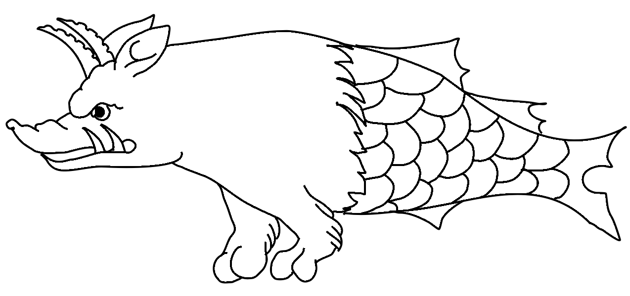 An aquatic monster with the body of a boar and the tail of a fish.