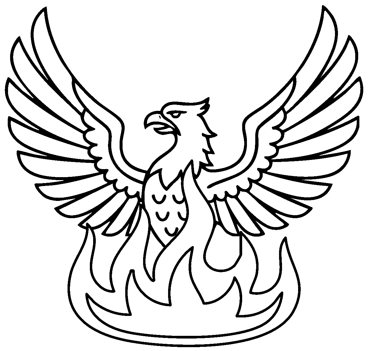 Default posture: displayed. Always shown rising from flames, even when not explicitly so blazoned. No proper coloration.