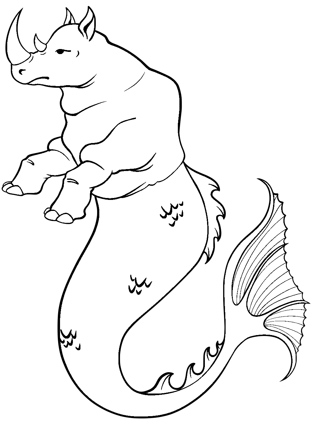 An aquatic monster formed from the front half of a rhinoceros and the tail of a fish.