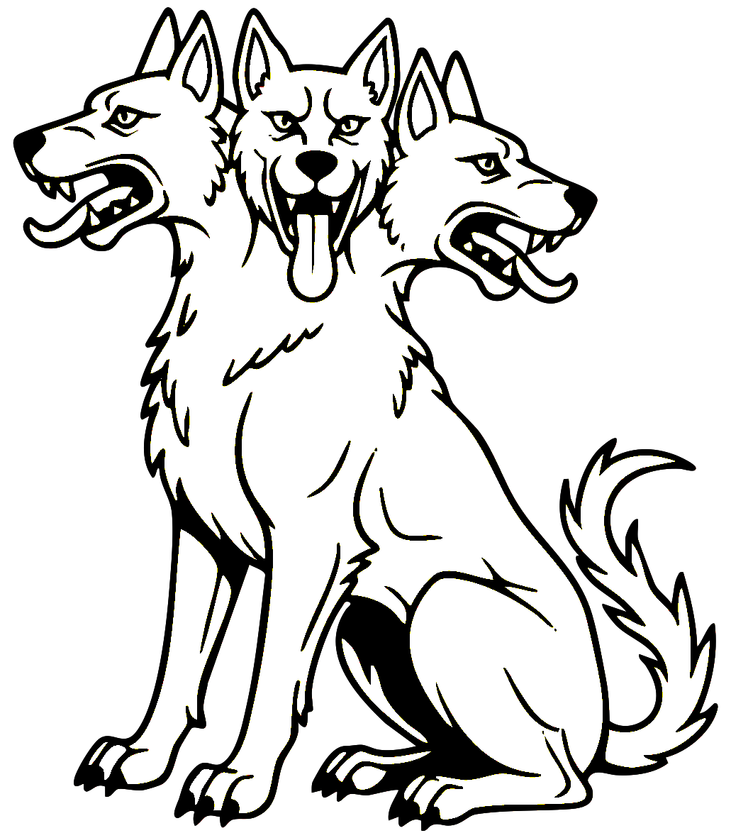 A hybrid monster, with an eagle’s forelegs on a lion’s body, with flames emerging from its mouth and ears..